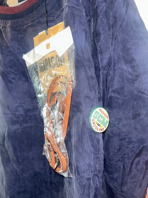 Blauw met een button.